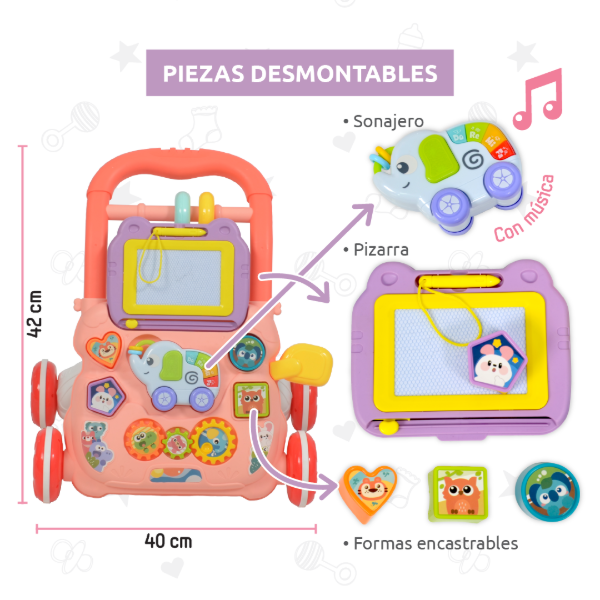 Caminador Interactivo con Pizarrón Mágico Extraíble ROSA